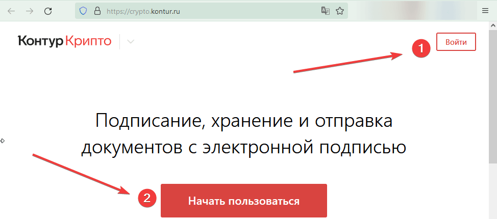 Заходим на сайт Контур.Крипто по ссылке https://crypto.kontur.ru/