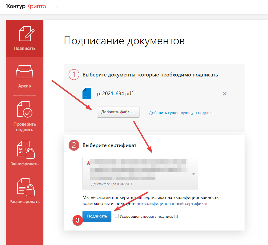Более подробная информация о пользовании сервисом доступна на официальном сайте: https://crypto.kontur.ru/help
